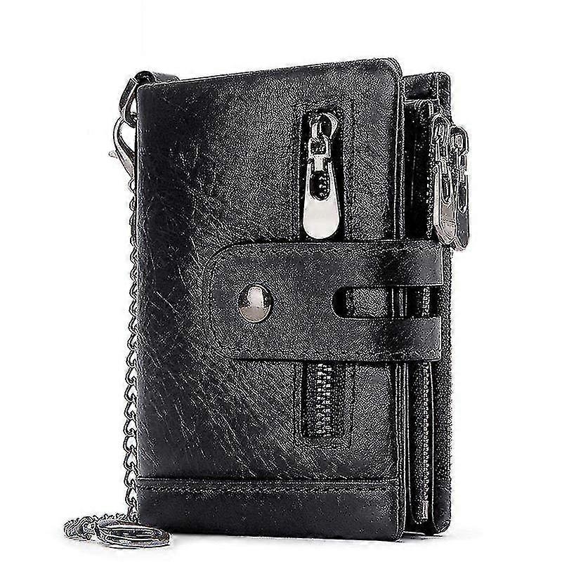 Rfid Blocking Mens Real Leather Wallet - Key Belt Chain Buttoned Coin Pouch