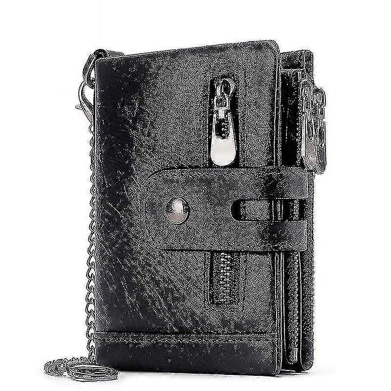 Rfid Blocking Mens Real Leather Wallet - Key Belt Chain Buttoned Coin Pouch
