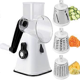 Pyörivä raastin, 3 rumpua, ruostumattomasta teräksestä valmistettu keittiöväline vihannesten silppuamiseen, viipalointiin ja raastamiseen