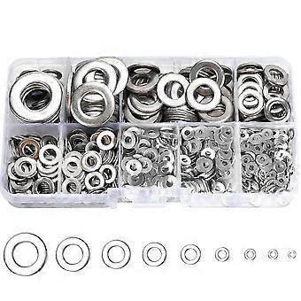 600 قطعة / مجموعة M1.6 M2 M2.5 M3 M3.5 M4 M5 M6 M8 M10 الفولاذ المقاوم للصدأ غسالة مسطحة غسالة عادي حشوات الحمار