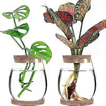 2-Piece Desktop Plant Terrarium with Wooden Stand for Hydroponic Growing and Propagation