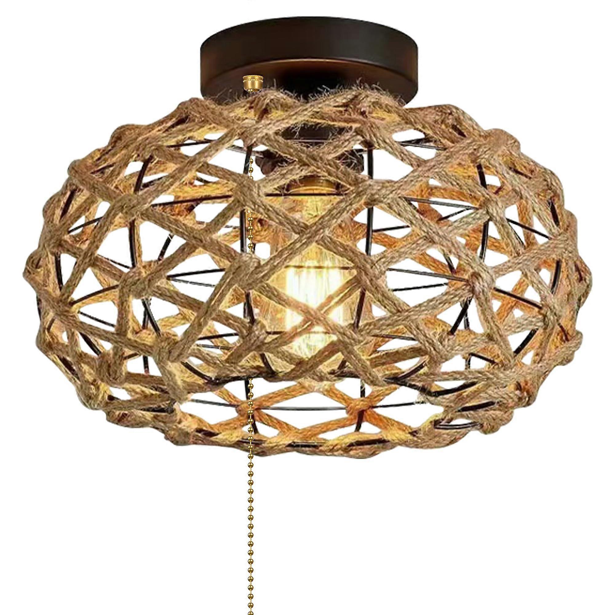 Builtin On/Off Zipper Switch Easily control your lighting with the convenient builtin zipper switch. Ideal for replacing or upgrading fixtures in your camping trailer during renovations, this lamp offers simple, reliable operation without additional wiring changes. Natural Bohemian Rattan Shade Features a brown twine, hollowcarved rattan design that adds a warm, organic touch to your space. The shade delivers a soft, inviting glow, making it for enhancing the atmosphere in RV interiors or cozy home settings. Industrial Metal Drum Design Durable metal drum cover combines style and function. Provides focused lighting for activities such as card games, dining, reading, or other tasks under an awning. Complements a variety of interior decoration styles while offering lasting performance. Replaceable Bulb Compatibility Designed for use with replaceable E26 socket 12V bulbs (bulbs not included), allowing you to choose the brightness and color temperature that fit your needs. In dining areas, it helps soften RV lighting for a more pleasant environment. When used at home, pair with 110V AC LED bulbs (not included). Versatile Installation Surfacemounted construction allows this lamp to function as an RV ceiling light, wall fixture, or table lamp depending on your layout and requirements. Its adaptability makes it suitable for both mobile and residential applications. Practical Applications Install as a ceiling light in your RV to brighten living areas while creating a cozy atmosphere. Use as a wallmounted fixture near dining or reading spaces for targeted illumination. Place on a table as a decorative lamp for mood lighting in covered outdoor areas or at home. Materials and Performance Crafted from quality rattan and metal for durability and aesthetic appeal. The combination of natural and industrial elements ensures a balanced look that fits modern, rustic, or bohemian interiors. Designed for dependable lighting in both travel and stationary use.