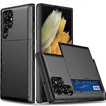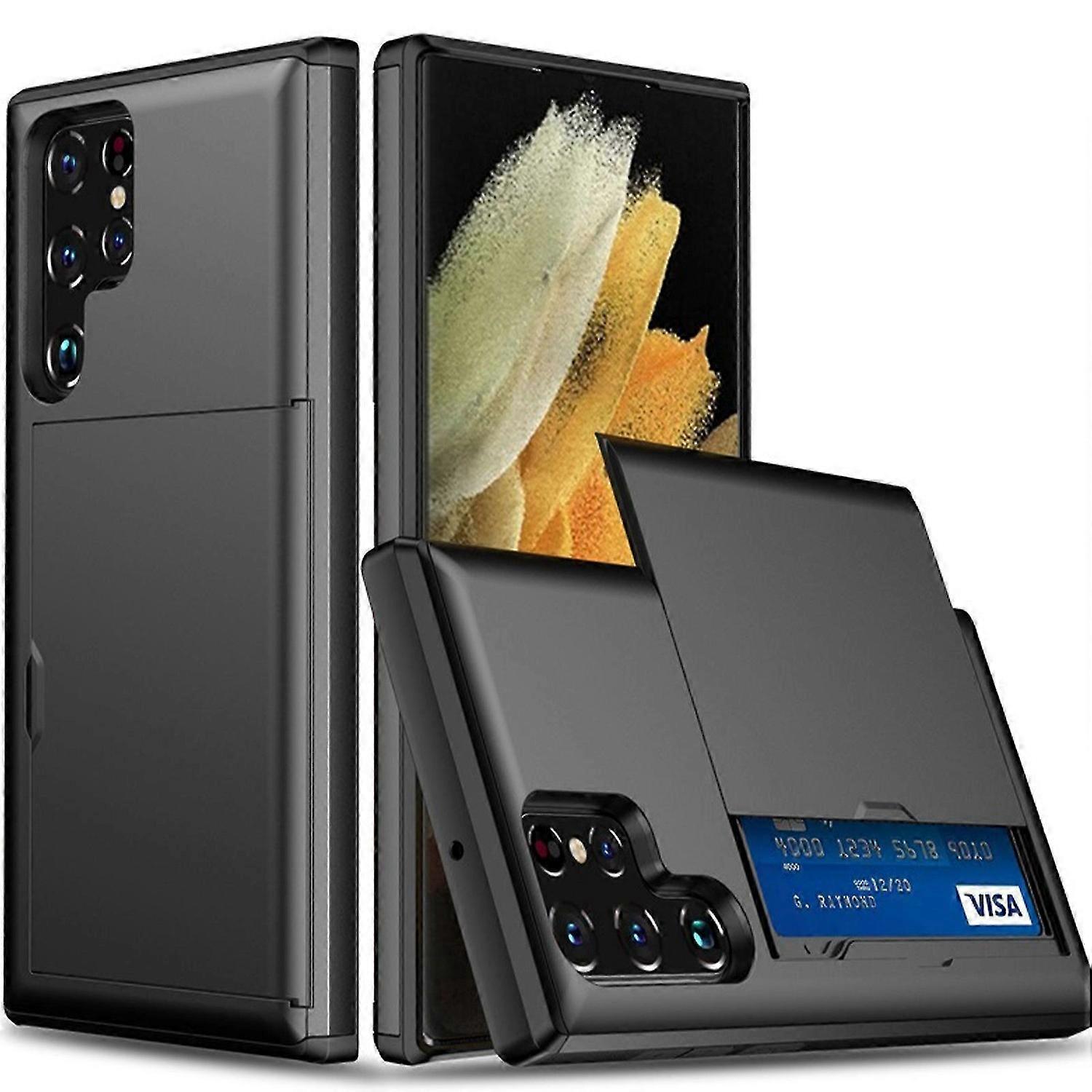 S24 Ultra Case Wallet with Credit Card Holder, Card Slot Shockproof PC TPU Phone Case Slide Flip Pro
