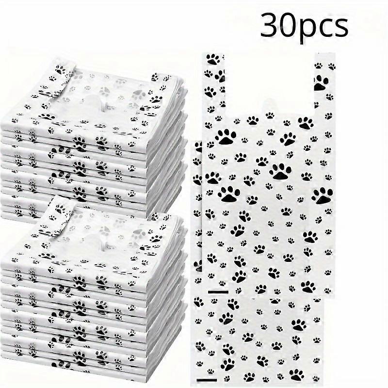 Sacs en plastique jetables avec poign��es, 30 pi��ces/paquet, sacs cadeaux imprim��s patte de chien et de chat pour le Shopping, fournitures d'