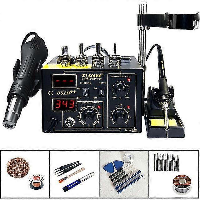 saike 852d++ electric soldering station hot air gun 2in1 welding kit standard rework soldering station with supply air gun rack