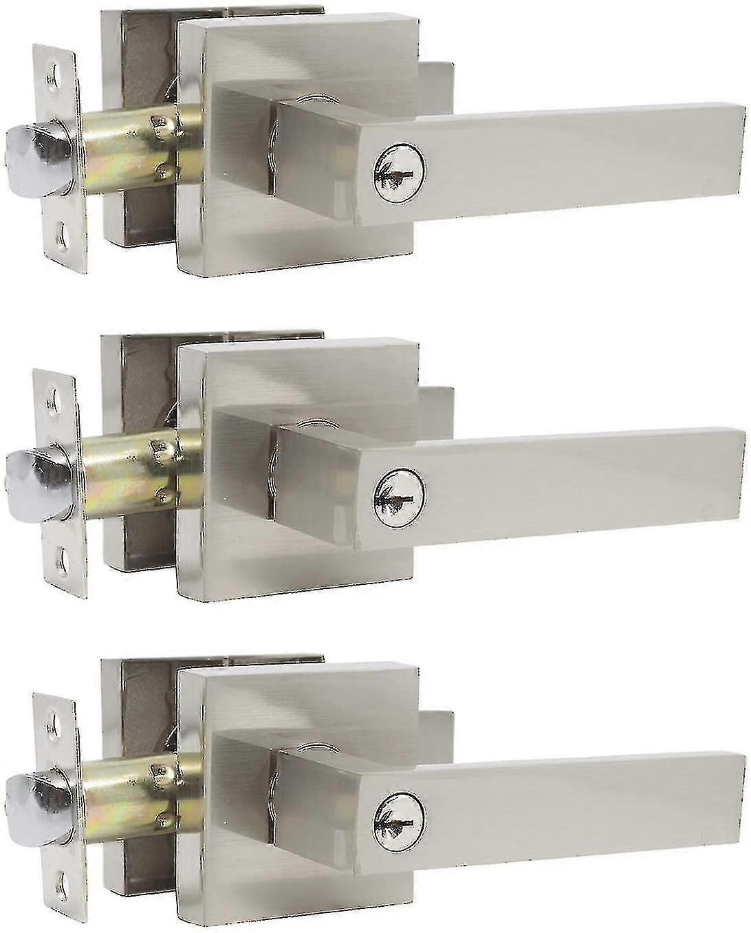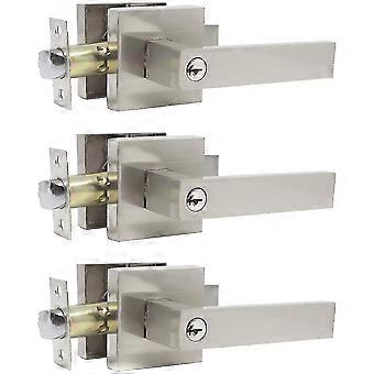 Satin Nickel Flat Lever Keyed Door Lock Hardware: 3-Pack with Entry & Front Door Lever Locksets, Shared Keys for Left or Right Hand Installations