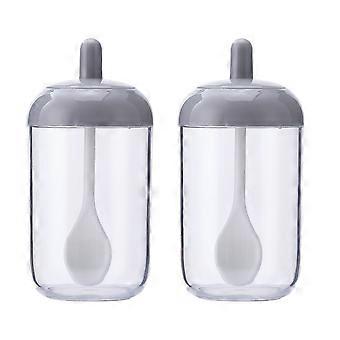 2kpl keittiö sokerikulho suolapannu pippurin säilytyspurkki maustesäiliö muovinen maustemaustepidike kannella ja lusikalla (harmaa)