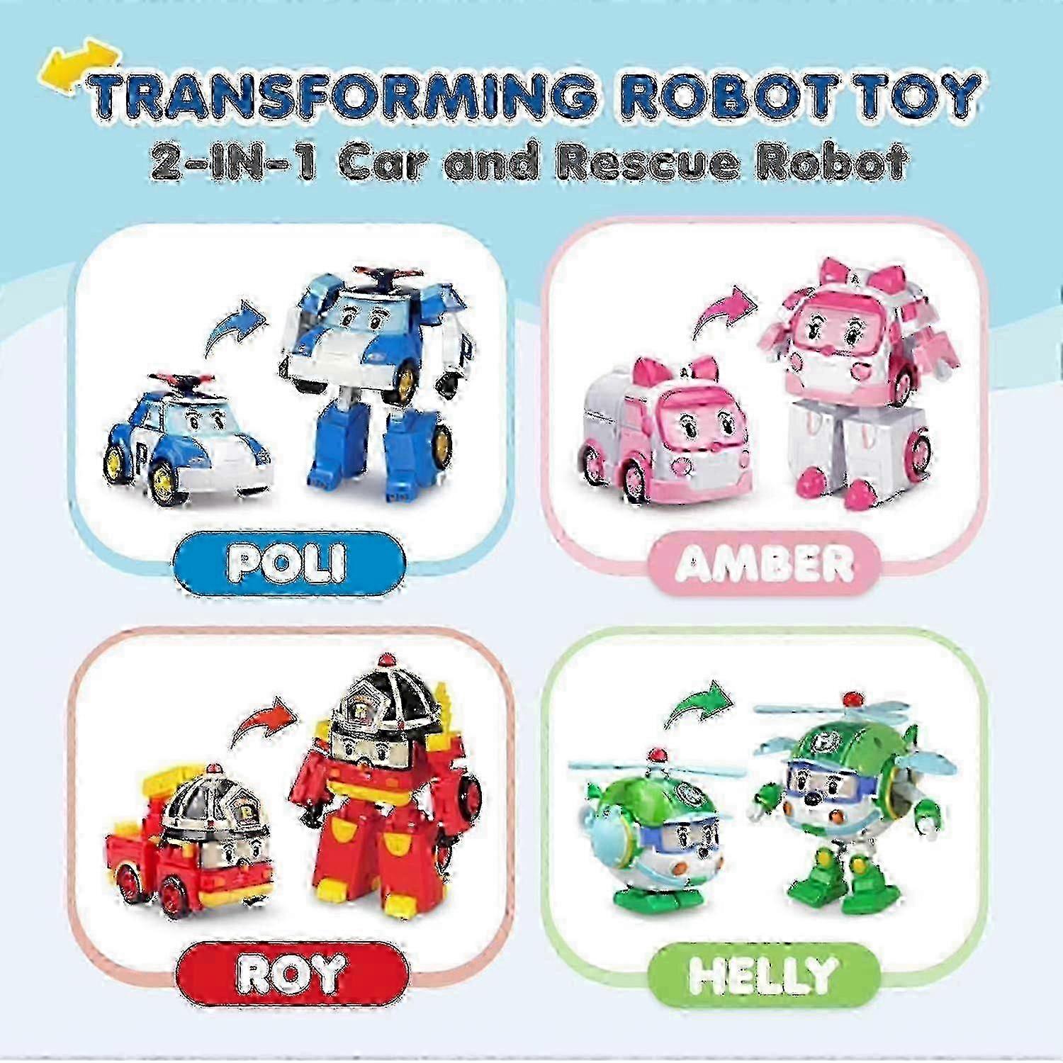 SBSG Robocar Poli 4 Pack Poli + Amber + Roy + Helly Transforming Robot Toys, 4" Transformable Action
