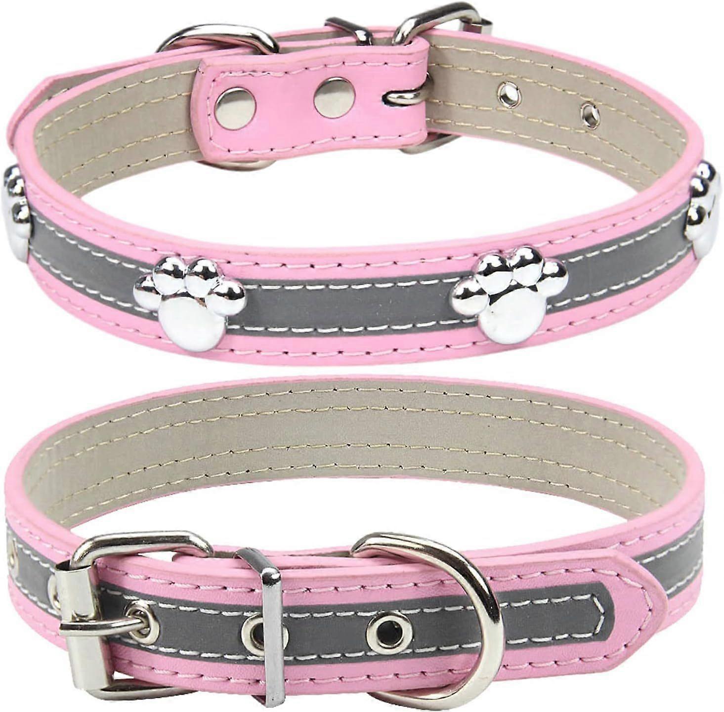 SBSGV Reflective Dog Collar with Cute Paw Rivet Studded Funny Soft PU Leather Adjustable Puppy Dog Collars for Small Medium Large Dogs Cats (Pink,Smal