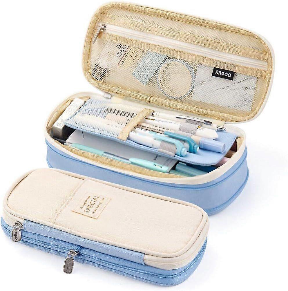 SBSGVBig Capacity Pencil Pen Case Office College School Large Storage High Capacity Bag Pouch Holder Box Organizer Light Blue