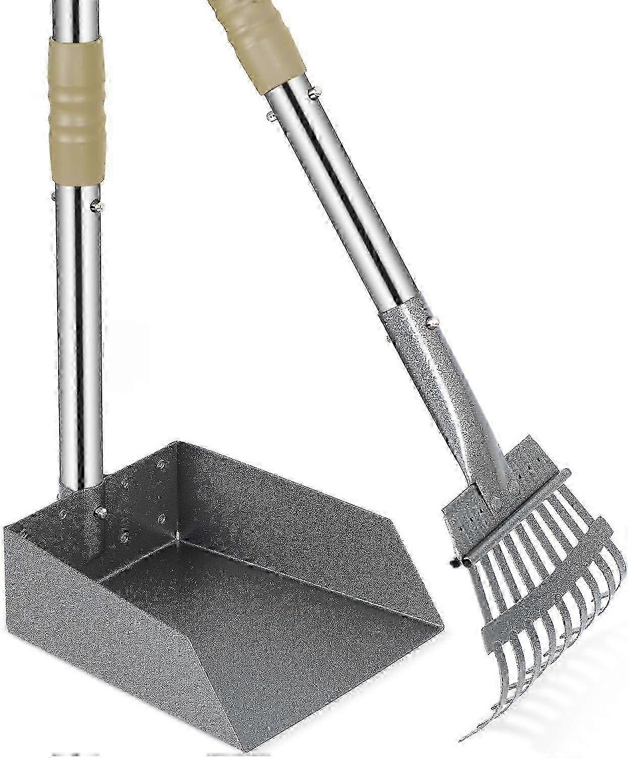 SCSYV Dog Pooper Scooper, Dog Poop Tray and Rake Set, Pet Waste Removal Scoop with Long Adjustable Sectional Stainless Handles