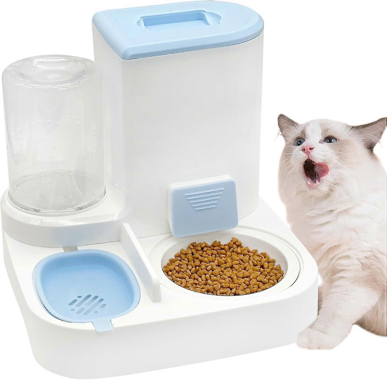 SDIGV Gravity Cat Feeder and Water Dispenser, 2 in 1 Automatic Pet Waterer Detachable Ceramic Food Bowls Set Pet Food Storage for Small Dog Puppy Cat