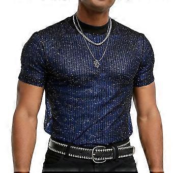 Men'S Glitter Mesh Sheer T Shirt Rave See Through Shirt Short Sleeve Top Tee Blue S