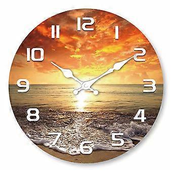 Auringonlasku rannalla merinäköalalla Hiljainen seinäkello, pyöreä puinen seinäkello, sopii olohuoneeseen, makuuhuoneeseen, huoneen sisustukseen,