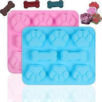 2 koiran muotoisen silikonijääpalatarjottimen sarja suklaalle, hyytelölle, kekseille ja karkeille - uudelleenkäytettävät pas