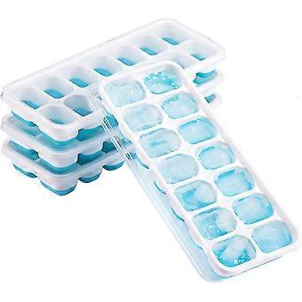 4 شبكات مكعب الثلج الصواني الافراج عن صواني الثلج مربع على شكل مع غطاء قابل للإزالة مقاومة للانسكاب