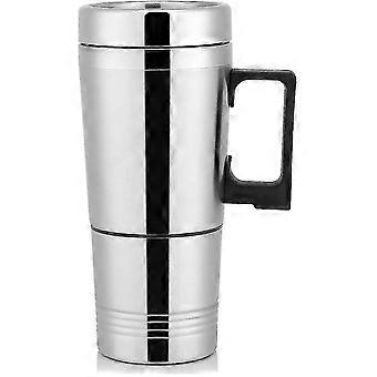 2024 كأس تدفئة السيارة الفضية زجاجة كأس تدفئة كهربائية للسيارة من الفولاذ المقاوم للصدأ غلاية السفر كأس الشرب بو
