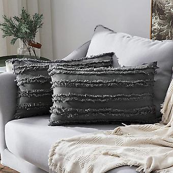 مجموعة من 2 ديكور بوهو رمي وسادة يغطي الكتان مخطط الجاكار نمط وسادة يغطي 12x20 بوصة أسود