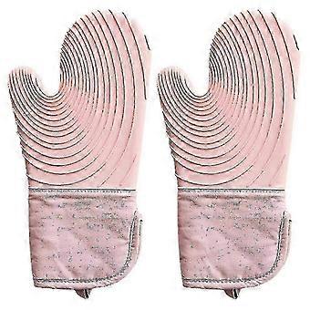 قفازات الفرن المنقوشة الوردي قفازات المطبخ القطنية المقاومة للحرارة للطبخ والخبز 2 قطعة