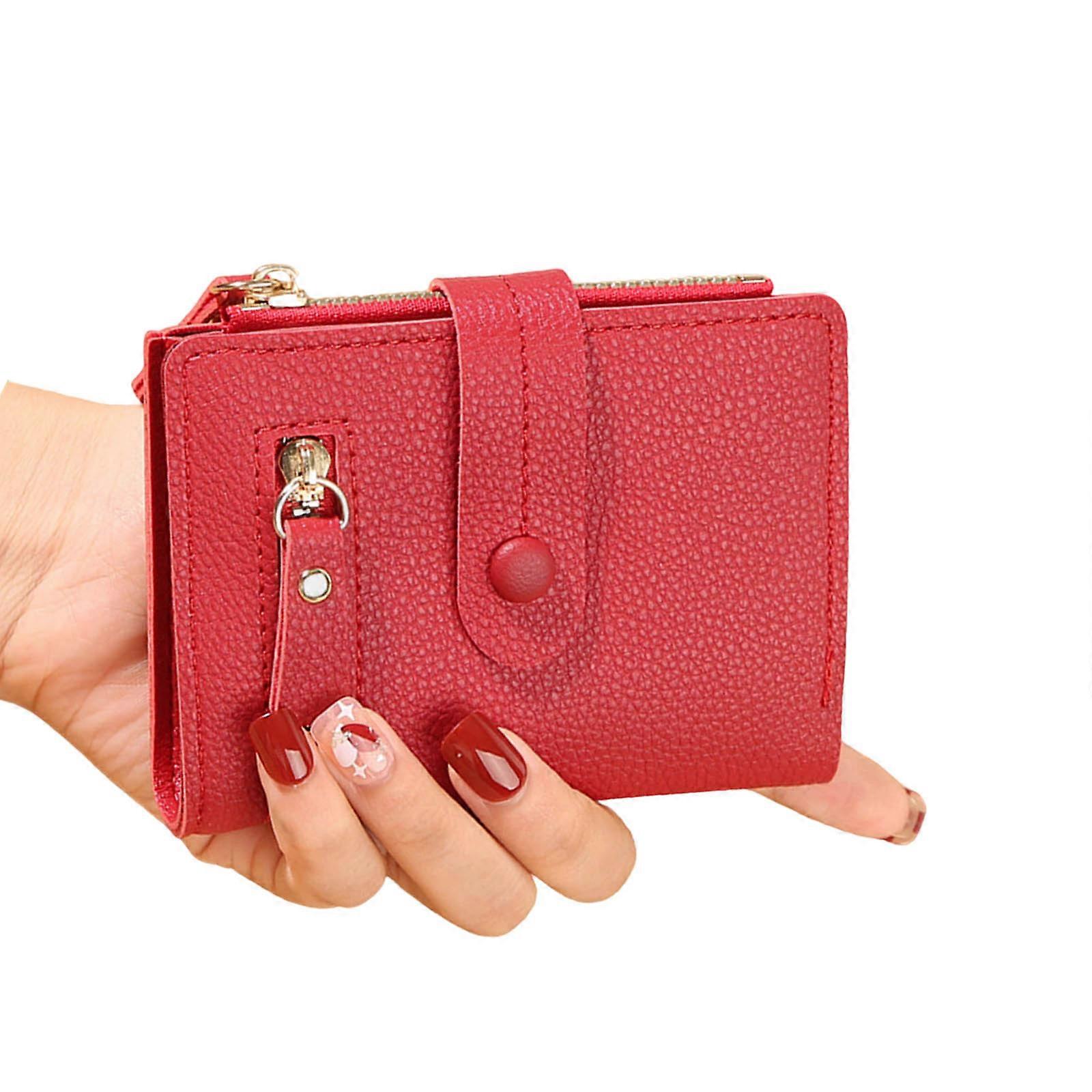 Secure Snap Button Purse for Women Compact Size Functional Pockets Card Organizer Practical PU Coin Purse Red