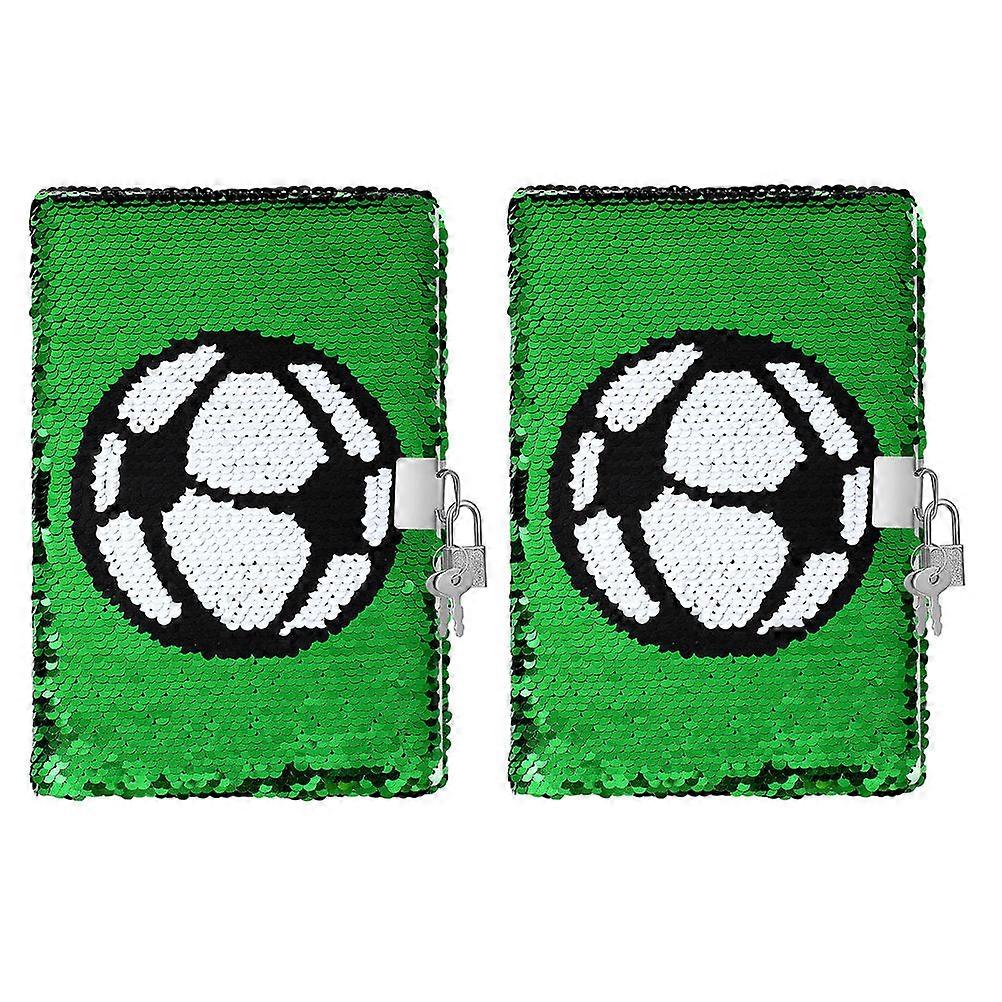 Sequin Football Diary Notebook 2Pcs for Writing with Lock Soccer Pattern Green