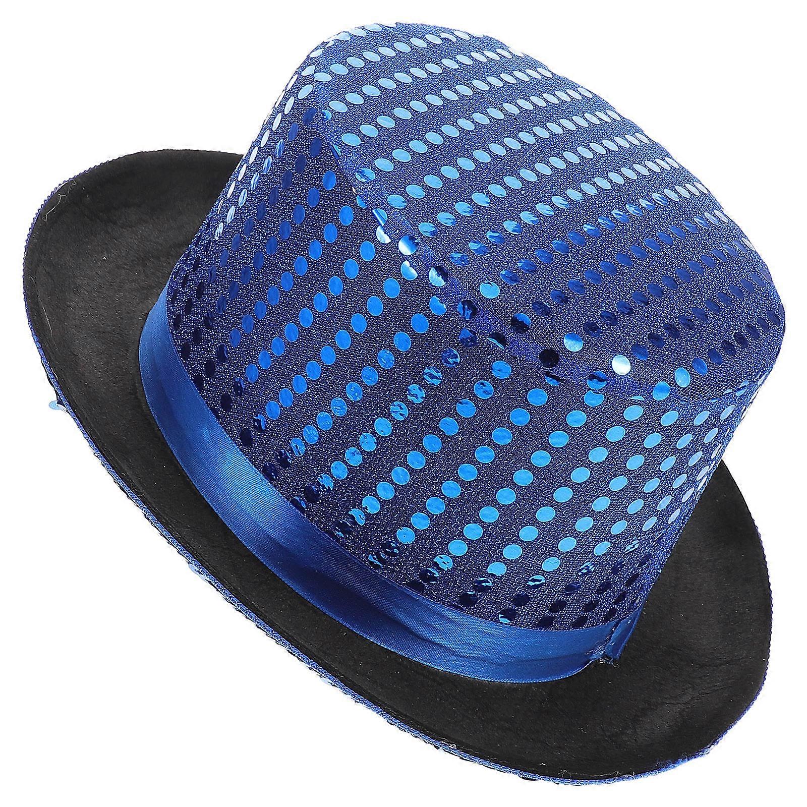 Sequin Top Hat for Performance with Blue Polyester Material