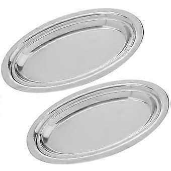 2 kpl ruostumattomasta teräksestä valmistettua kalatarjotinta ruoan tarjoiluun, kultaiset keittiölautaset