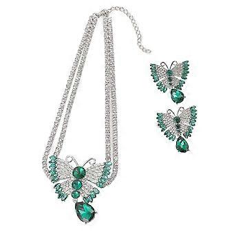 Hääkorut 1 setti upea kruunukaulakoru korvakorusetti naisille, vihreä, täydellinen häihin tai erityisjuhliin