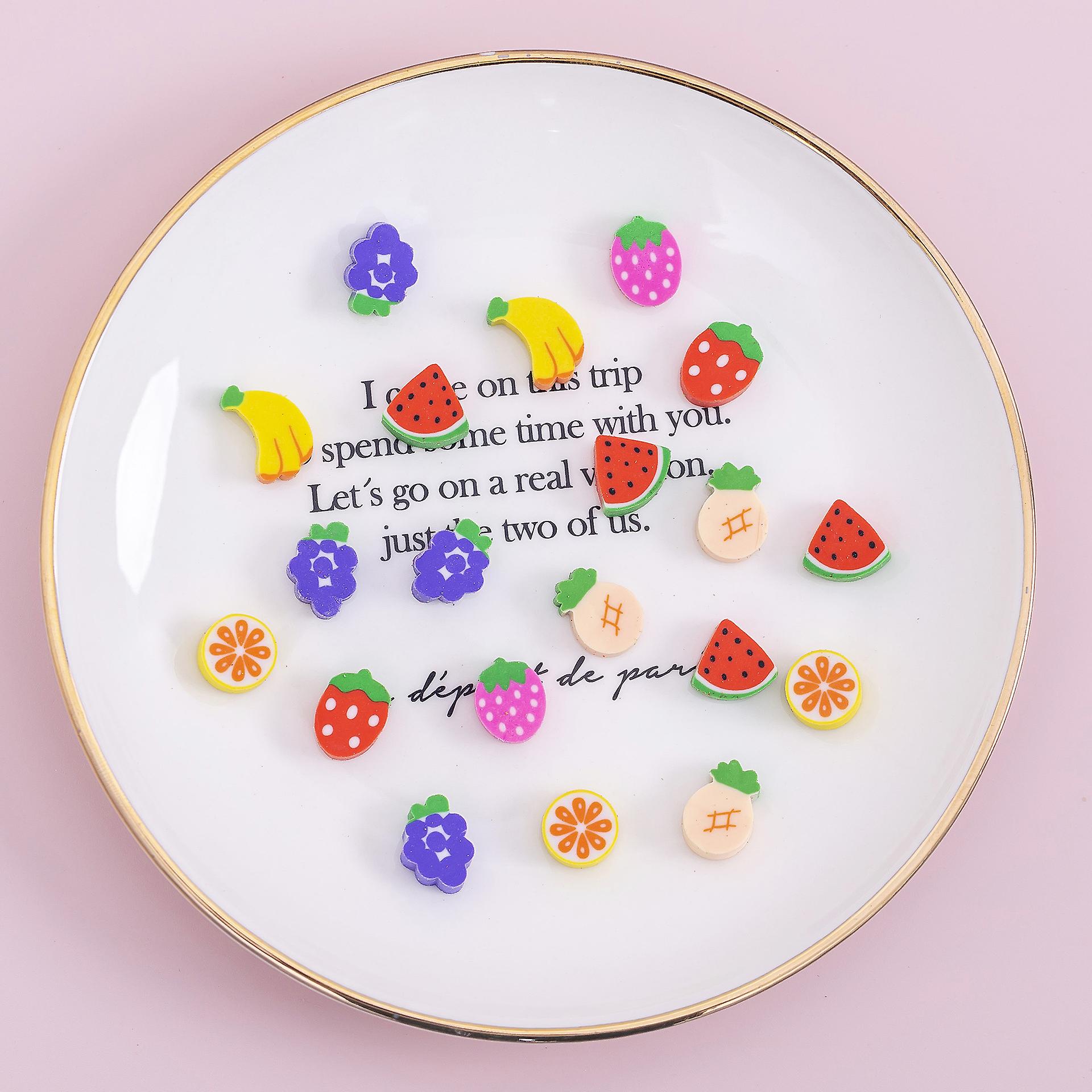 Set of 100 mini erasers (fruit model) with cute design and cla