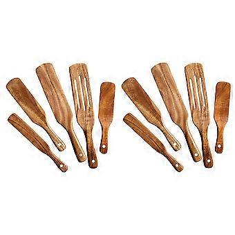 Puiset Spurtles-setti (10 kpl) - Teak-puusta valmistettu keittiövälinesetti - Lämmönkestävät tarttumattomat puiset keittoastiat sekoittamiseen ja sekoittamiseen