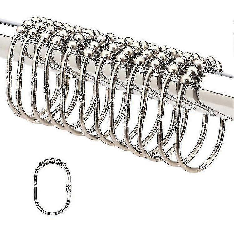 Shower curtain hooks, 12-piece set, five-roller design for smooth operation and rust prevention