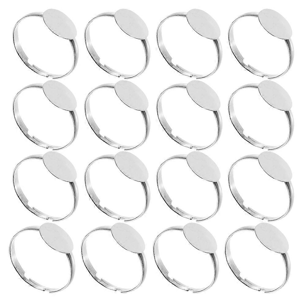 Designed for convenience and creativity, these blank ring settings are great for crafting unique jewelry pieces. The flat pad provides a stable surface for attaching decorative elements, while the adjustable band ensures a comfortable fit. Ideal for crafting presents, wedding accessories, or unique . Features - Color: Silver -Material:Iron - Size: 1.80X1.80X1.00cm/0.71X0.71X0.39in -unique fit: the adjustable ring blanks offer a unique fit for various finger sizes, ensuring comfort and style -Effortless gem swapping: the innovative adhesive setting makes it easy to swap out time gems, allowing for versatile styling options -sturdy construction: made from distinctive, these rings are designed for long time wear and comfort -Secure and stable: the sturdy base structure provides a secure hold for your gems, preventing them from falling out -great for all occasions: these rings are ideal for both everyday wear and special events, adding a unique touch to your look Package list: 50 x adjustable ring holder
