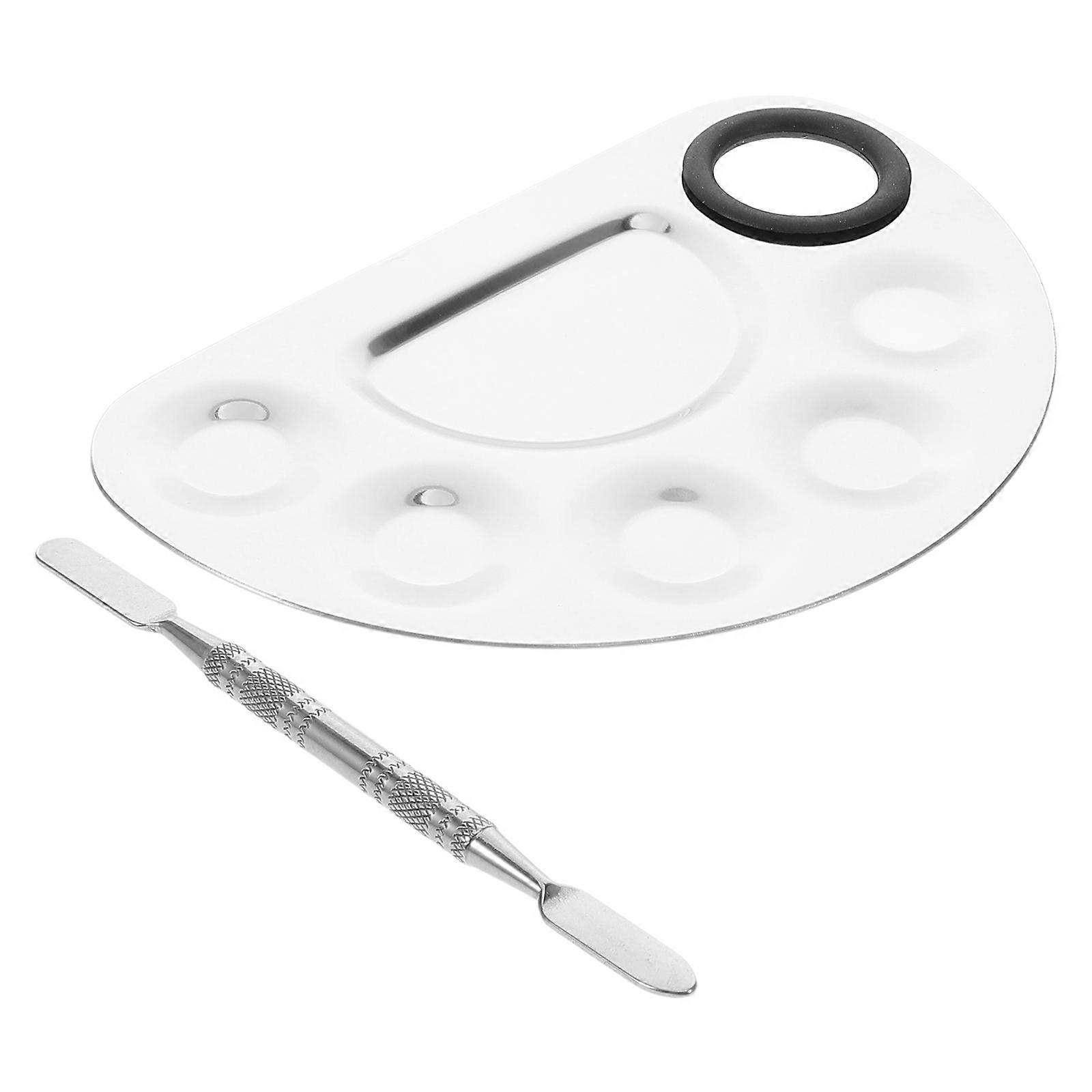 Silver Makeup Mixing Palette and Spatula Set for Foundation Use