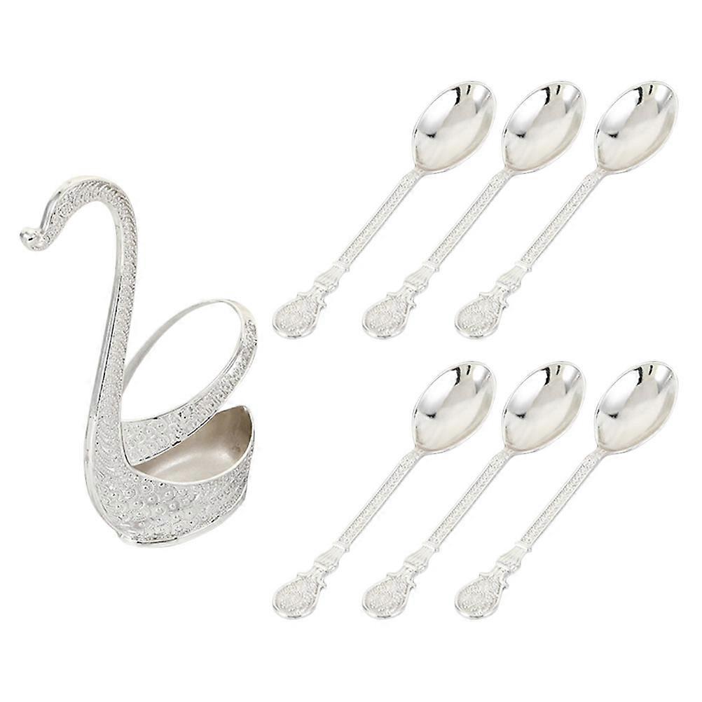 Silver Spoon with Storage Rack for Dessert Serving 2Sets Kitchen Use