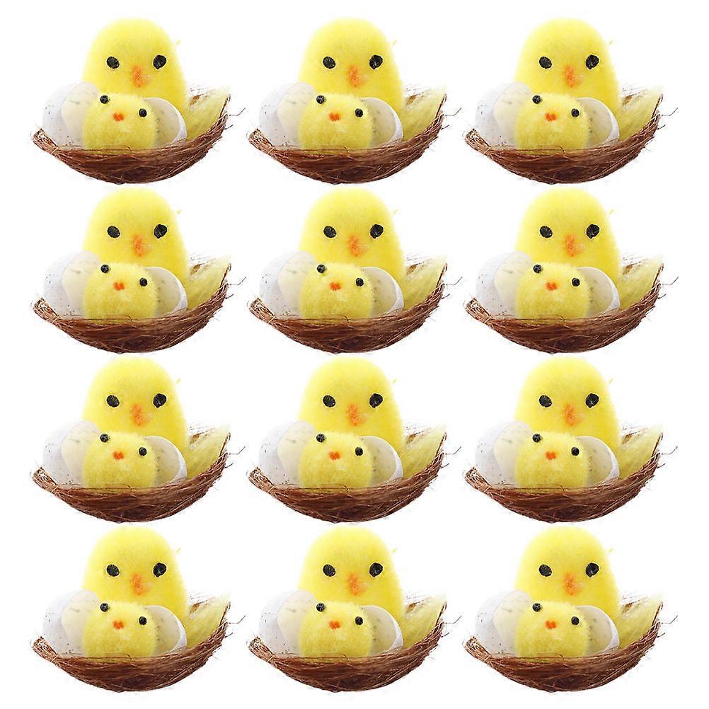Simulation Easter Chick Decor Mini Chicks for Home Use 12Pcs