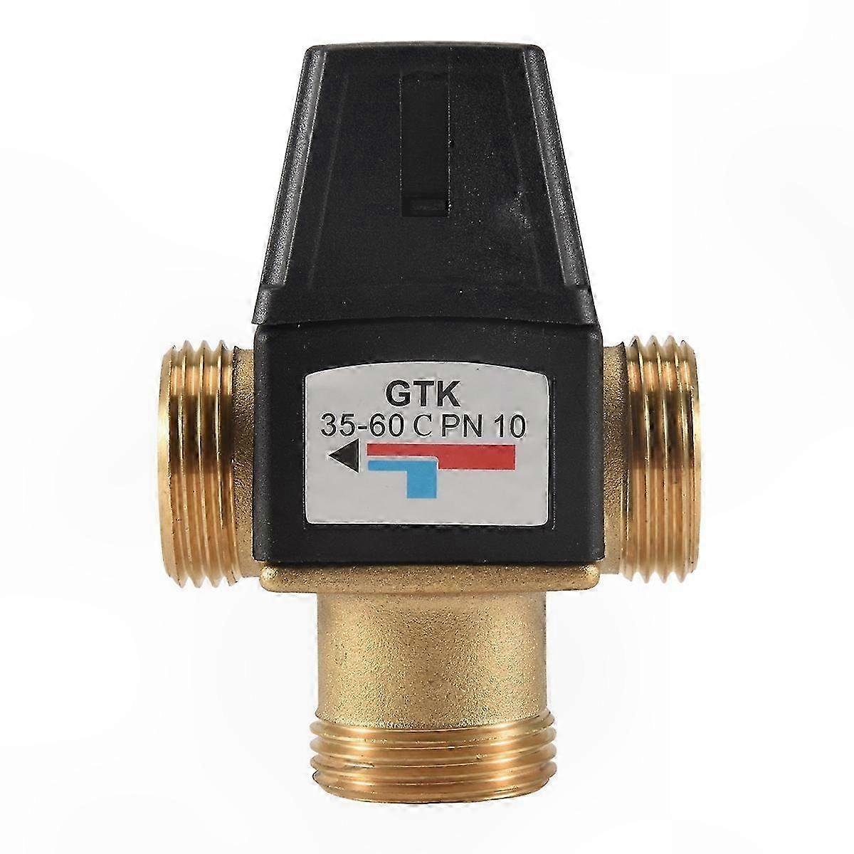 Thermostatic mixing valve with high flow and reliable performance, suitable for domestic hot water systems with or without hot water circulation, and small floor heating circuits. The built-in temperature control mechanism provides anti-scald protection for household hot water systems. Designed for use with residential hot water appliances and floor heating systems to maintain consistent temperature and flow. Maintains stable outlet water temperature and pressure regardless of fluctuations in inlet conditions. Temperature range: 35 to 60°C. In the event of cold water supply failure, the safety mechanism automatically shuts off the hot water to prevent scalding. Working pressure: 1.6 MPa. Cold water temperature: 0–29°C. Hot water temperature: 40–90°C. Outlet flow rate: 1–10 m³/h. Applicable medium: Water. Model: DN25/DN20. Model Number: Thermostatic Mixing Valve. Pressure: High Pressure. Power: Hydraulic. Structure: Control. Media: Water. Color: Black + Gold. Material: Brass + Plastic. Package Includes: 1 x Thermostatic Mixing Valve. Note: Other items not included. Lighting and display differences may cause slight color variations between the image and actual item. Measurement error allowed: ±1–3 cm.