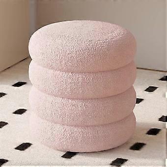 Vaaleanpunainen pyöreä meikkijakkara flanelliviimeistelyllä, ergonominen meikkituoli tyttöjen makuuhuoneeseen, massiivipuurunko