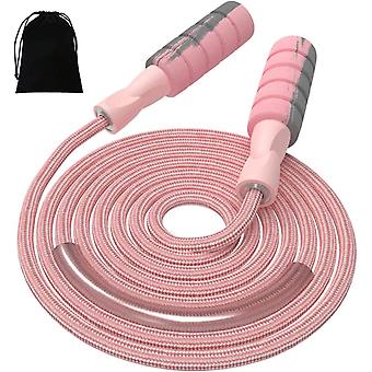 حبل القفز القطن قابل للتعديل تخطي حبل القفز المرجح للنساء للبالغين والأطفال ممارسة اللياقة البدنية الرياضية حبل القفز (وردي)