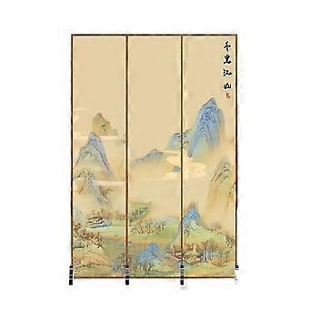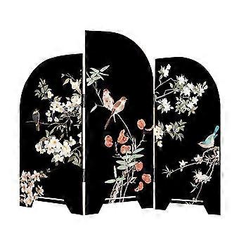 Mini Folding Screen Chinese Desktop Divider with Traditional Artwork and Bird Flower Patterns