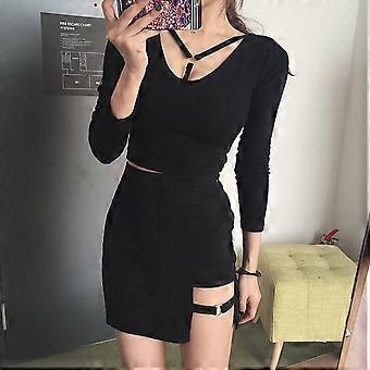 2 قطعة / مجموعة PU لون الصلبة السباغيتي حزام المحاصيل الأعلى مع التنانير الصغيرة مجموعة الملابس (أحمر XL)