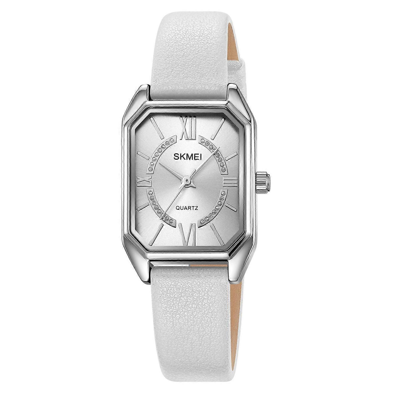 SKMEI 2238 Women Quartz Watch Leather Strap Square Wrist Watch-Silver Case/Silver Dial