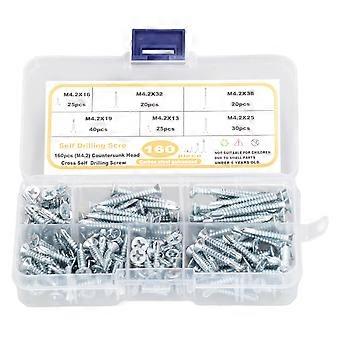 160 قطعة مسامير الحفر الذاتي الكربون الصلب الأزرق الزنك مطلي غاطسة الصليب رئيس السحابة M4.2 للخشب