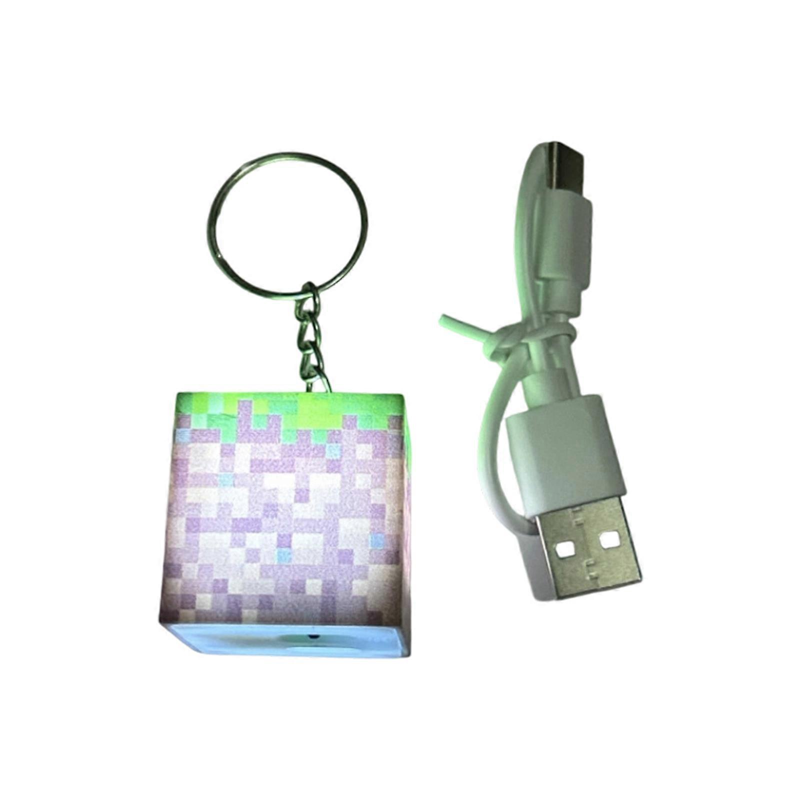 Small Rechargeable Flashlight Keychain LED Backpack Light Pocket Sized Keychain Cubes Game Model Toy Enduring Multicolor