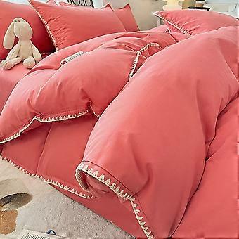 Soft and Comfortable Summer Bed Four Piece Set Cotton Bedding Solid Color Red Size 2m