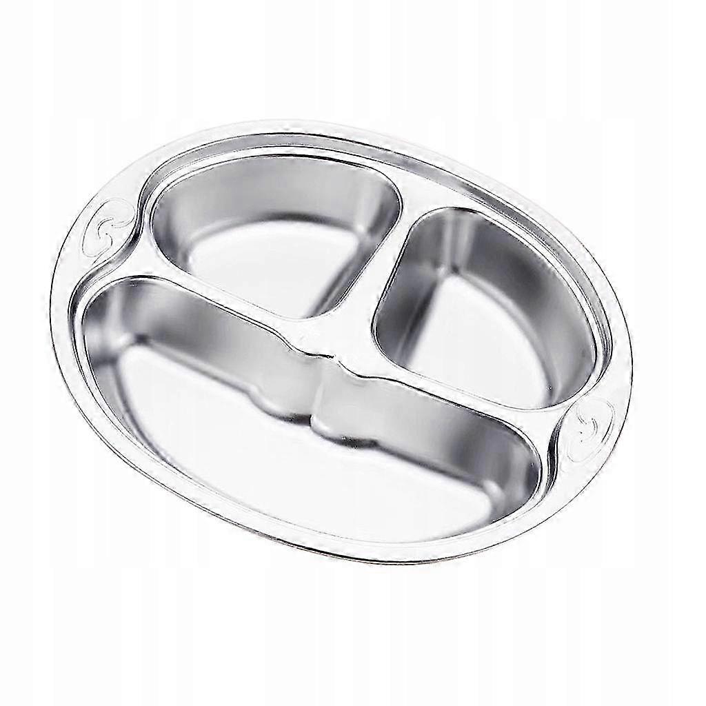 Stainless Steel Plate Divided For Kids, Food Container With Snacks : Non-toxic, high quality, food grade, 304 stainless, non-dying, rust, crack or crack, durable Integrative molding, double design and curling design bring different experience to children's meals It is suitable for babies who have learned to eat for more than 6 months and grow up with children Also suitable for infants and older children Trays for most high chairs Suitable for picky eaters, there are three friendly compartments to keep food separate Plate is deep enough to hold soup, cereal, rice, so on Suitable for eating at home, picnic, camping, travel, school and beach etc - Inner mesh panties Material: stainless Size (L. x . x H ): approximately 23,5X20X4 cm/9.2X7.8X1.5 inch contains: 1 stainless steel plate for children