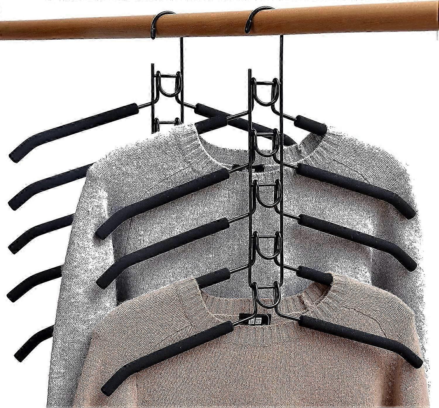 Space Saving Hangers, 2 Pack, 5 In 1 Multi-function Magic Metal Hanger Anti-slip Hanger With Multi-purpose Eva Multi-layer Sponge For Jeans Skirts T-s