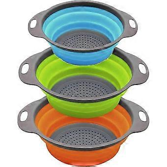 Space-Saving Silicone Colander Set, Foldable Kitchen Colanders in Round Shape, 3-Piece Collection for Easy Storage