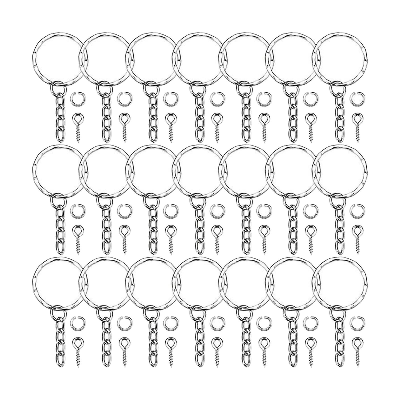 Description: Durable Material: Made of strong with silver-toned metal,it is firm.Color:silver. Type Design: Polished round ring.Great workmanship with the ring,smooth surface and edge,will not scratch your hands and stuffs. Size: Ring Diameter / 25mm, the chain is approx,1.1 in length, and the open jump ring is 0.3 in diameter. CONVENIENT TO USE : Each comes with a separate jump ring, you don't have to put extra effort to open before connect something on it, Convenient for you to attach charms on to it,easy to install to make your DIY project simple. Screw eyes pins are used for attaching beads, clay, resin to create your unique charms. Great key chain parts for DIY jewelry / craft making. Specification: Material: Metal Color: Silver Package Includes: 50 Pieces Keyring with Vhain 50 Pieces Jump Rings 50 Pieces Screw Eye Pins : Please allow slightly difference due to manua l measurement. Color may be slightly different since different monitor. Thanks!