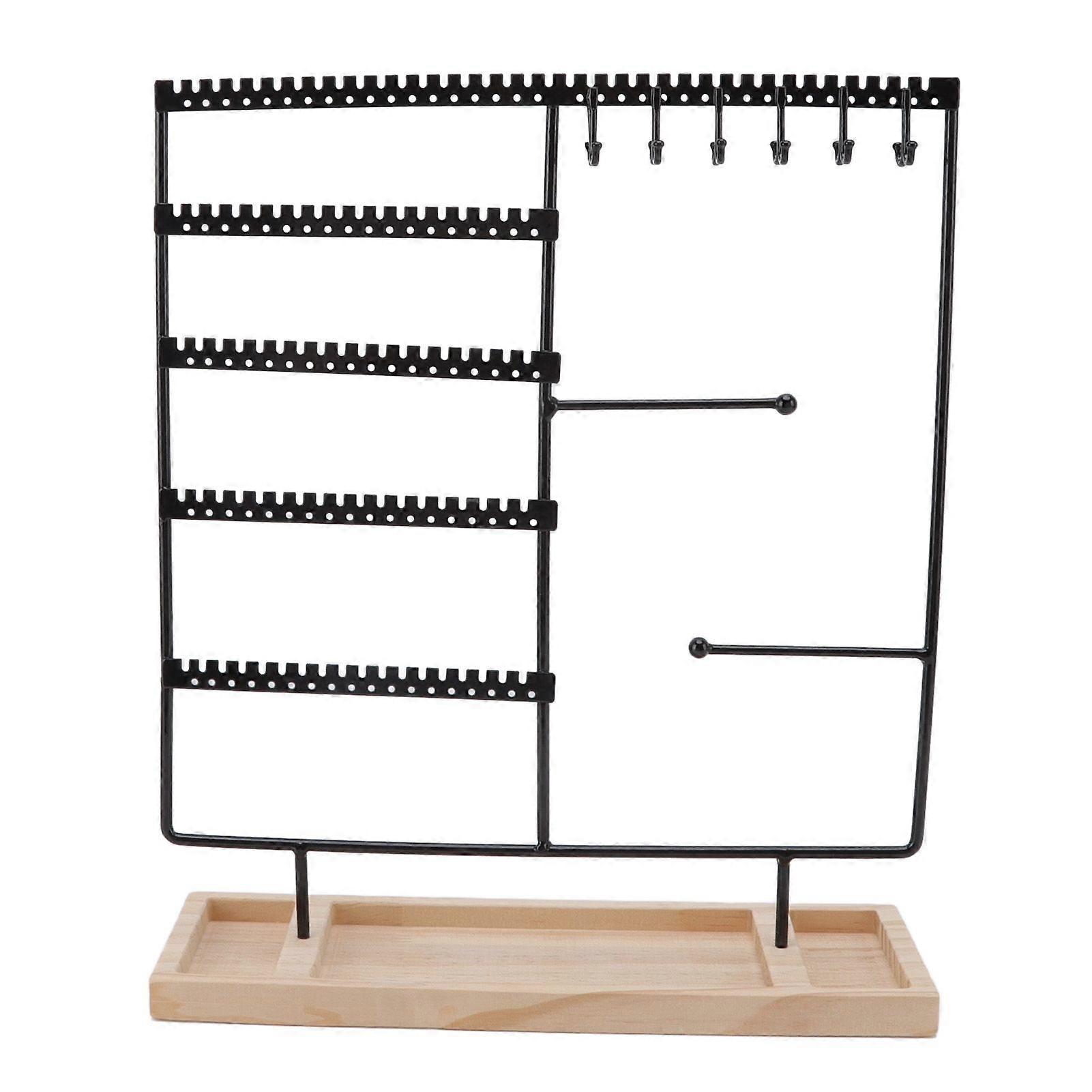 SQCLV Earrings Hanger Iron 5 Tier 90 Holes 2 Metal Bar Earrings Rack with Wooden Base for Earrings Necklaces Bracelets Rings Black