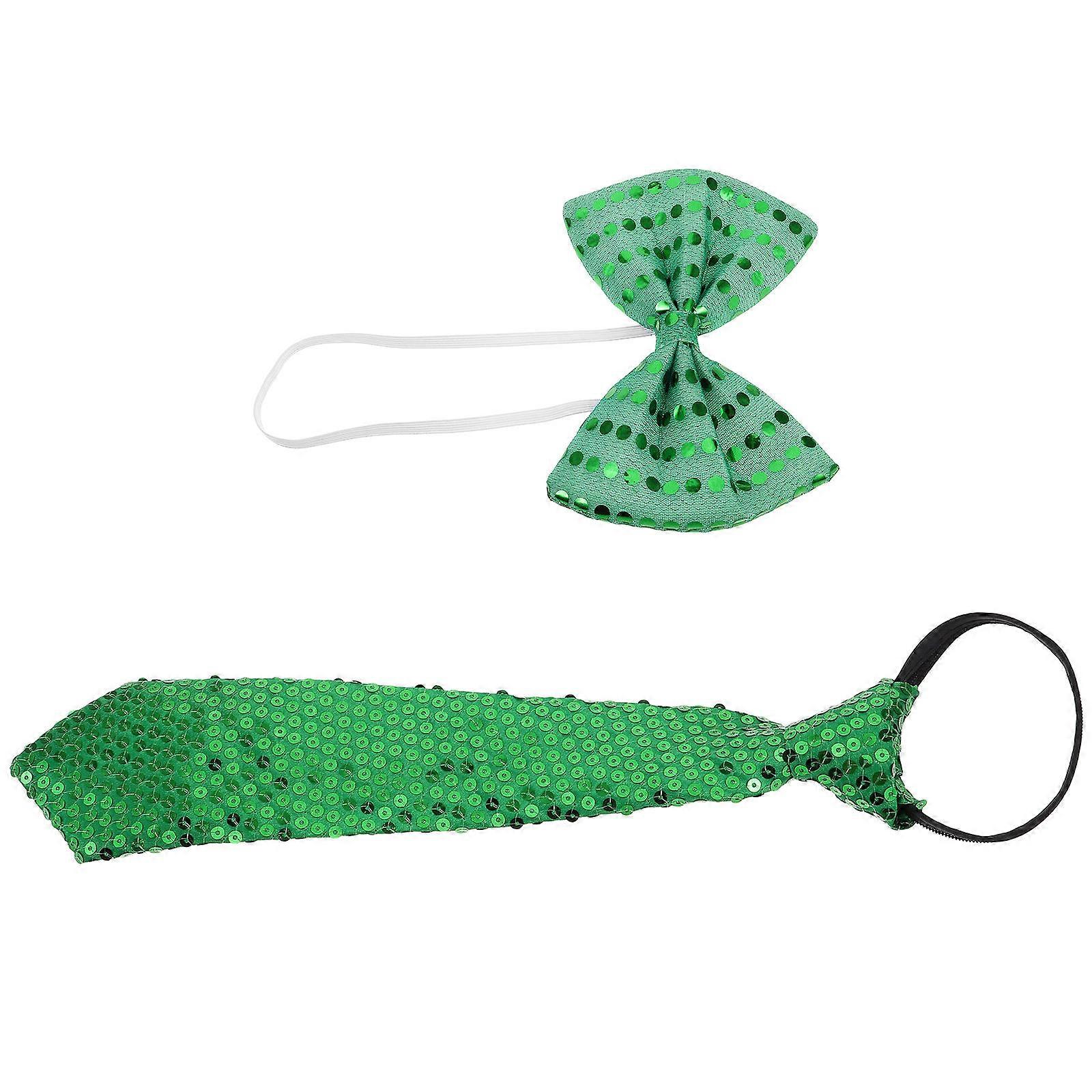 St Patricks Bow Tie and Sequin Neck Tie Set for Party 2Sets